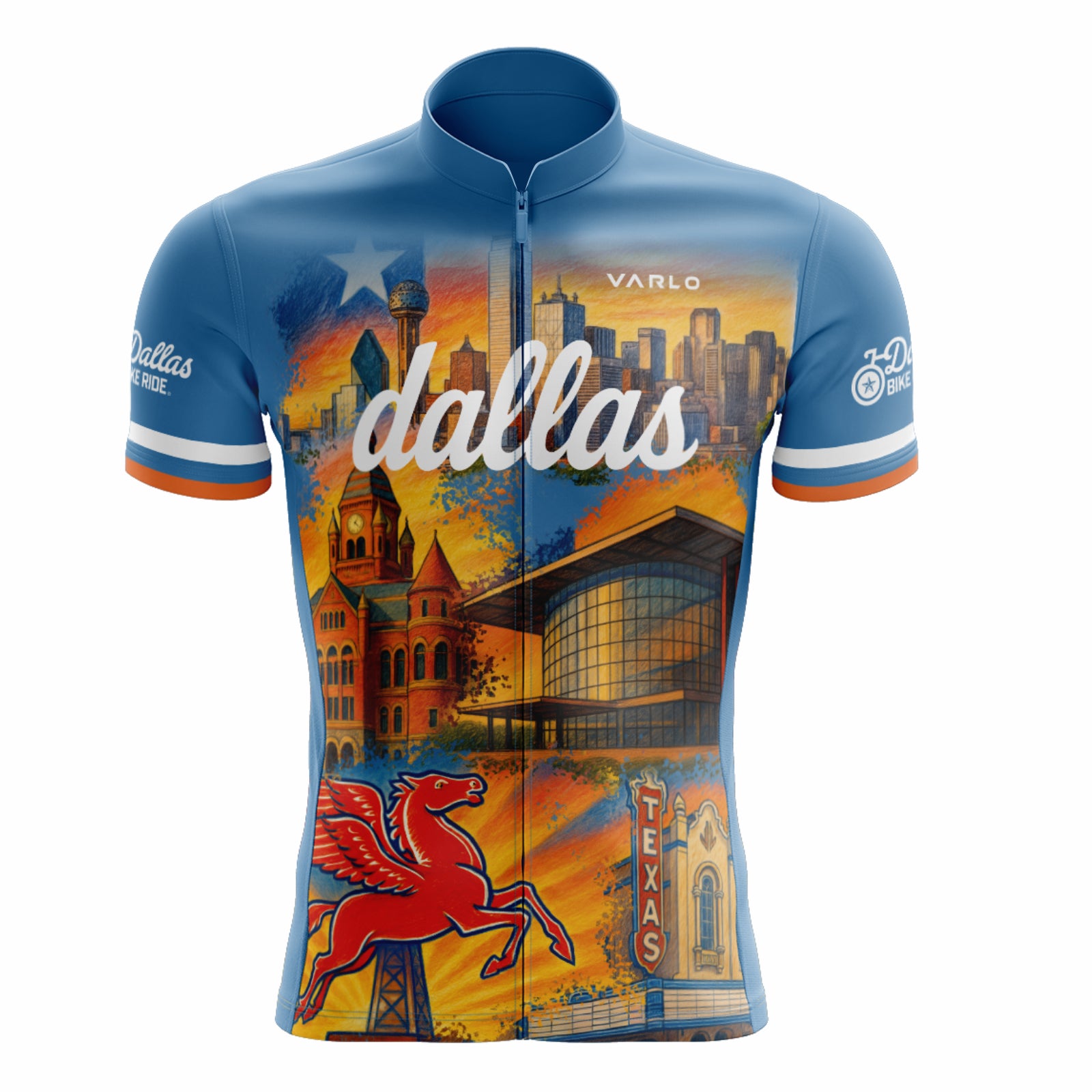 Dallas Bike Ride 2025 Course design. All season performance. Soft core fabric stretches to fit. Notch at neck. Reinforced 3 rear pockets. Below waist hem. UPF 15. Race Length sleeves. 4-way stretch. Machine washable delicate cycle 30 C max. Do not bleach, iron, dry clean, or tumble dry. 110 GSM fabric weight. 60% poly / 40% elastane main panels, 80/20 other fabric. Item ID drpv729994w