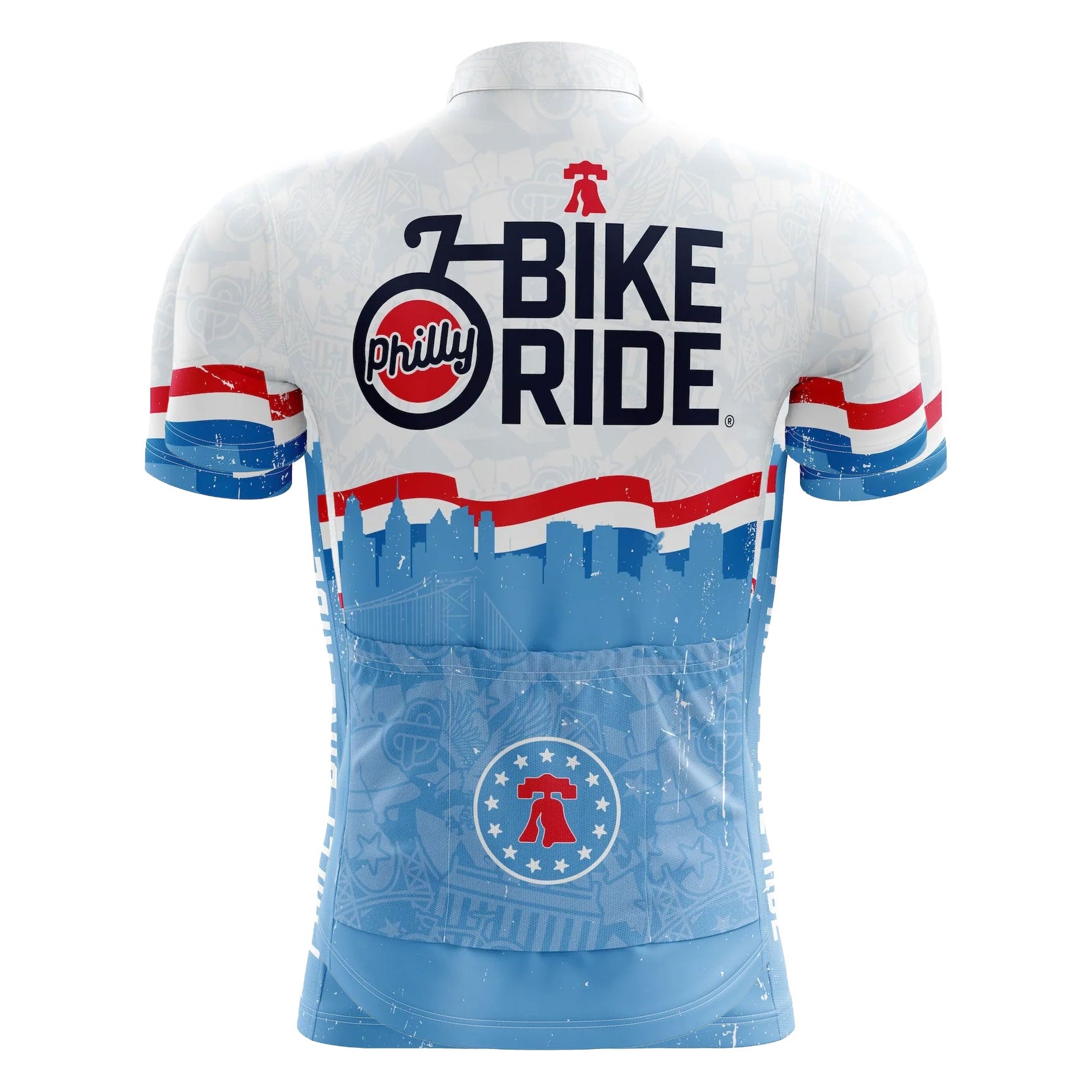 Philly Bike Ride Skyline design. All season performance. Soft core fabric stretches to fit. Notch at neck. Reinforced 3 rear pockets. Below waist hem. UPF 15. Race Length sleeves. 4-way stretch. Machine washable delicate cycle 30 C max. Do not bleach, iron, dry clean, or tumble dry. 110 GSM fabric weight. 60% poly / 40% elastane main panels, 80/20 other fabric. Item ID pbov721294w
